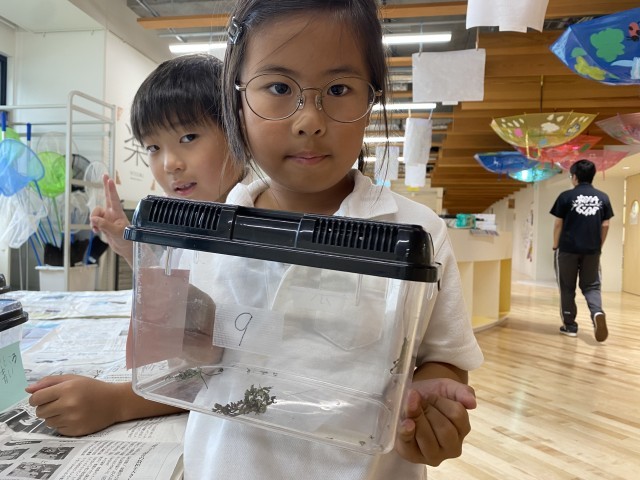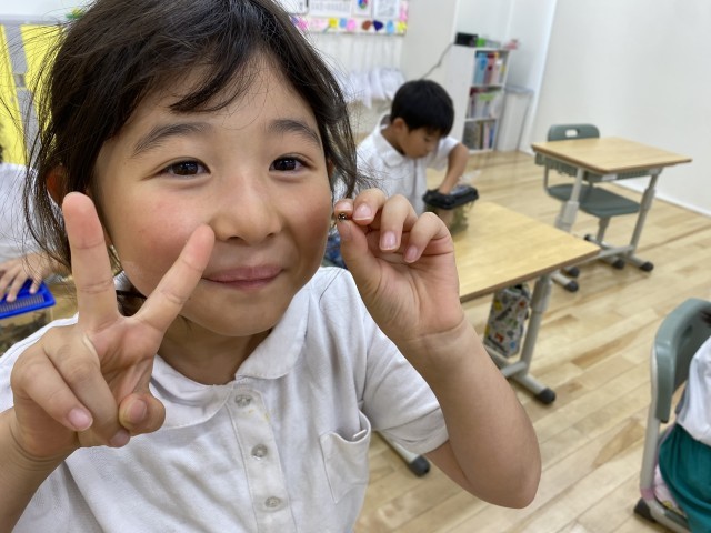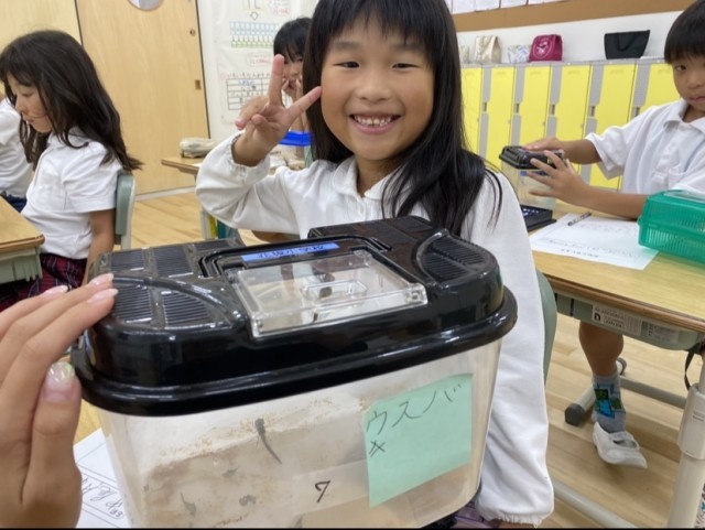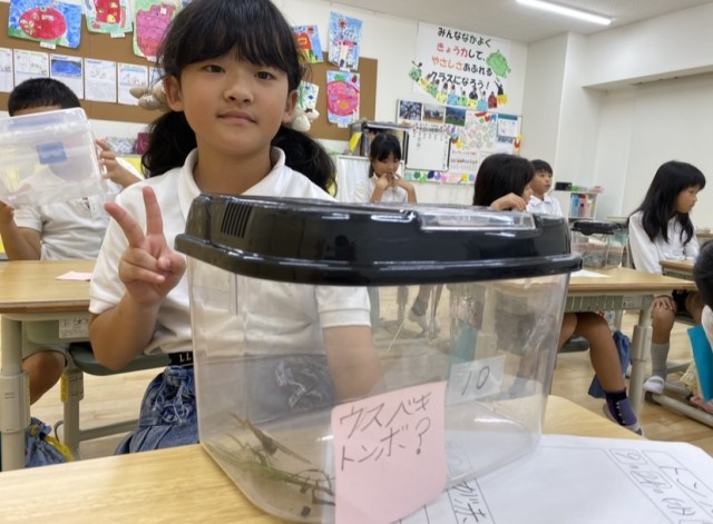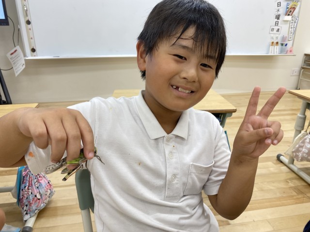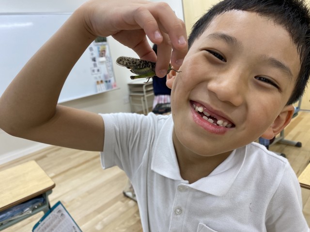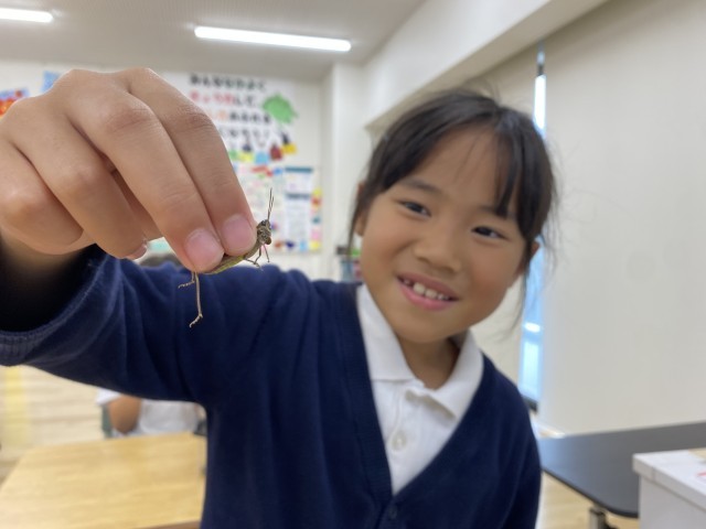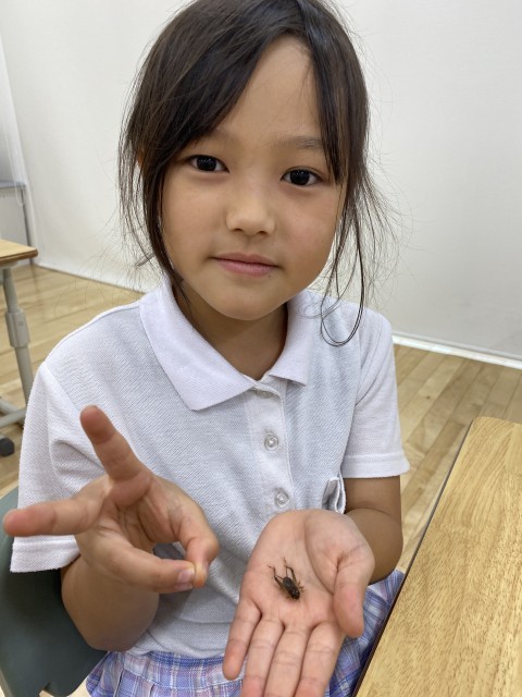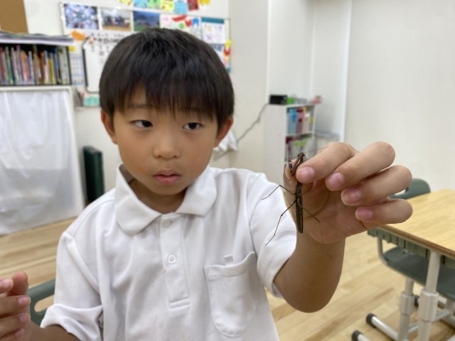 虫取りに行ってきました!虫がいそうな場所を一生懸命探したり、トンボを追いかけたり…みんなで楽しく活動しました。捕まえた後は図鑑で虫の種類を調べて、食べるものやお家づくりについて調べました。休憩時間に土を入れてあげたり、エサをいれてあげたり、虫と向き合っている姿が沢山見られました。生活科の授業等でもう少し観察していく予定です。