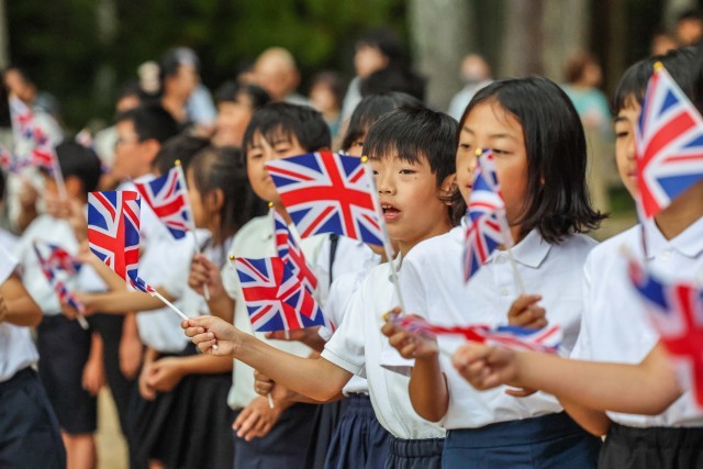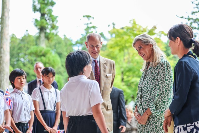 その後、6年生代表児童と中学生生徒が伽藍を案内をしました。