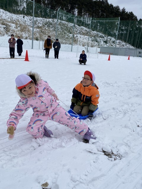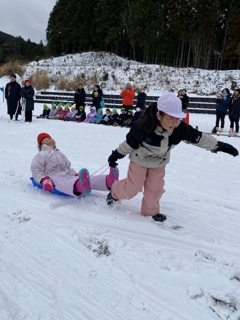 今日は雪上運動会でした!そりを力いっぱい引いて、玉入れでは思いっきり投げました。雪の上の運動会はとても楽しかったです。来年も楽しみです!