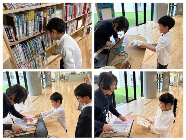 次の日に自分たちで本を借りに行きました。自分の読みたい本を選んでカウンターに持って行き、学年と名前を上手に伝えて借りることができました。