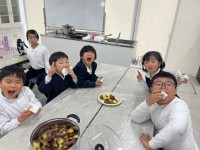 こども園での交通安全教室に1年生も参加させてもらいました。イカのおすしの話や、横断歩道を渡る時に気をつけること、自転車に乗る時はヘルメットをかぶること等、交通ルールについてたくさんのことをお話していただきました。終わってからは、年長組の子ども達と一緒に、園庭で鬼ごっこや遊具を使って遊びました。新しいこども園に行くのがはじめての子もいて、喜んでいました。