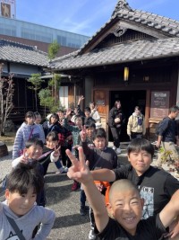 写真は授業冒頭に聴診器を使って、心臓の音を聞いている様子です。