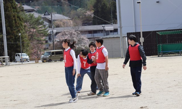 学年の枠を越え、さらには先生という立場も越えて、みんなで心地よい汗を流しています。