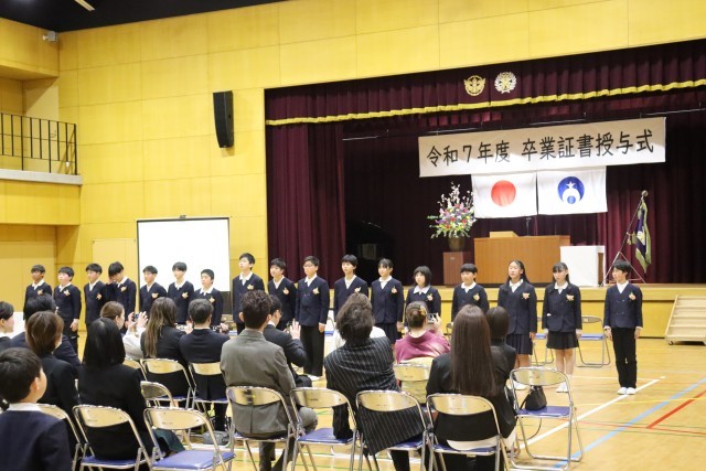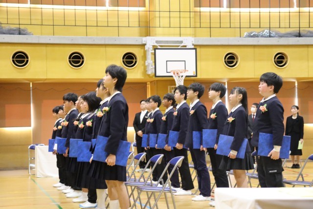 式典では、卒業生一人ひとりがこれまでの思いを胸に、立派な態度で式に臨みました。卒業生が声を合わせて言葉を述べ、歌を届ける姿は、参列した方々の心に深く響くものでした