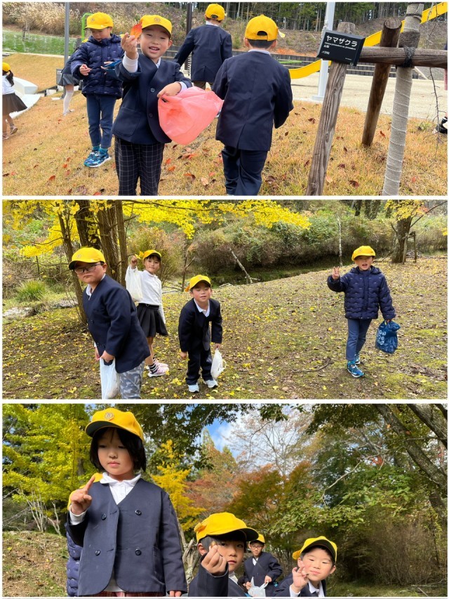 紅葉の季節です!高野山の木々が見頃を迎えました!美しく色づいた葉っぱを拾いました!どんぐりもたくさん拾えて子どもたちは大喜びでした。拾った落ち葉やどんぐりは工作で使用します。完成が楽しみです!