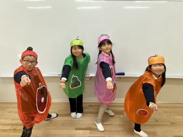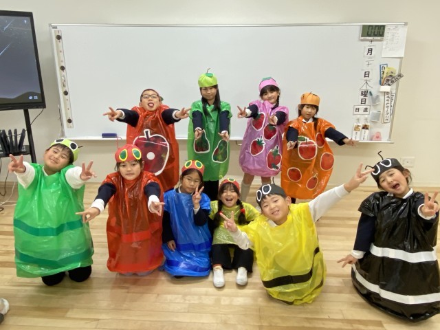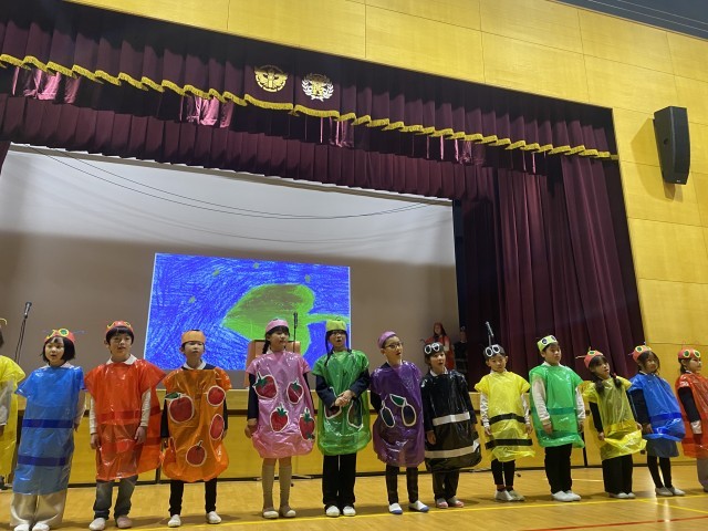今日は、英語フェスティバルでした!はらぺこあおむしの劇を英語で一生懸命頑張りました。「緊張したけど、楽しかった!」と、2年生みんなやり切ることができました。応援してくださった皆さん、ありがとうございました。
