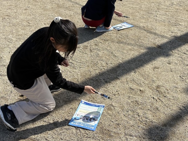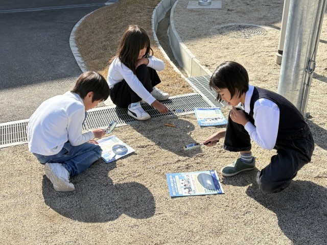本日の理科は光の性質の勉強の一環で運動場に出て太陽の光を虫メガネで集めました。