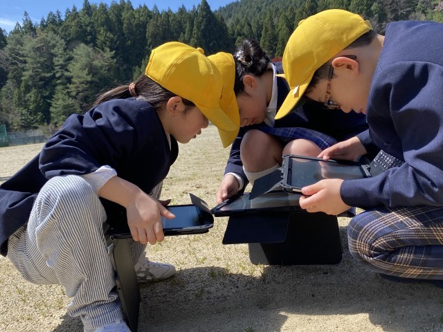 本日の理科は光の性質の勉強の一環で運動場に出て太陽の光を虫メガネで集めました。