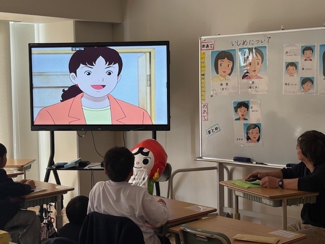 人権擁護委員による「子ども人権教室」が開かれました。子どもたちは、プレゼントをきっかけにいじめが始まってしまうアニメを視聴し、登場人物の気持ちについて考えました。今回の学習を通して、友達を思いやる気持ちや、人権を大切にする態度について考える貴重な機会となりました。