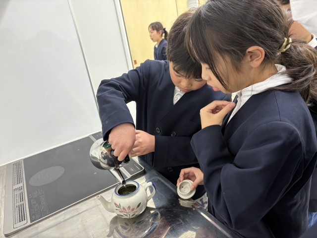 本日、家庭科ではお茶を入れる実習を行いました。