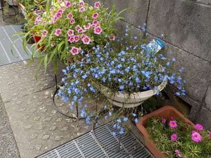 いろいろな色のお花と周囲の緑がマッチしていて、とても美しいです。車ばかり乗っていると、道端に花が咲いていることに気づきませんが、たまに歩くとたくさんの植物があることに気づかされます。時には、ゆっくり歩くことも大切な時間だなと感じた、梅雨の午後でした。