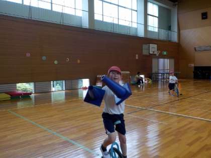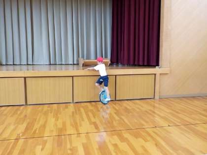 1年生もステージの端から端まで行けるように、頑張って練習しています。2年生は、コーンを使いスロープの練習をしました。気合が入っています。また、3年生は画面ではわかりずらいですが、バックの練習をして、壁から体育館の真ん中過ぎまで行けるようになっています。ケガをしないように、たくさん練習をして運動会ではたくさんの方に見ていただきたいと思います。
