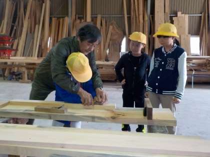 今日は、花坂の工房岡本さんにも行かせていただきインタビューをしました。以前に大阪で作った三重の塔の10分の1の精巧な模型を見せていただいたり、仕事で使用する道具について教えていただいたり、実際にカンナで木を削らせていただきました。児童は、体験をさせていただき喜んでいたそうです。インタビューのまとめを頑張って、いい発表になるといいですね。今日は、お忙しい中お時間を作っていただき、ありがとうございました。