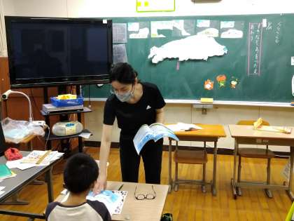 1年生は「くじらぐも」を朗読したあと、好きな場面を選んでいます。