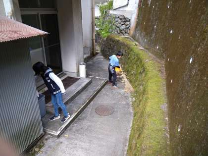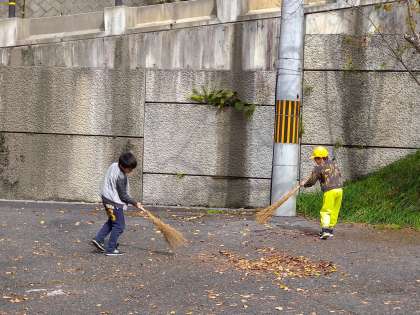 少ない人数ですが、外まわりの枯れ葉はほぼ取りきれていました。