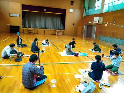 遠足予備日のため、みんなでお弁当を外で食べる予定でしたが、寒さのため体育館で食べることになりました。