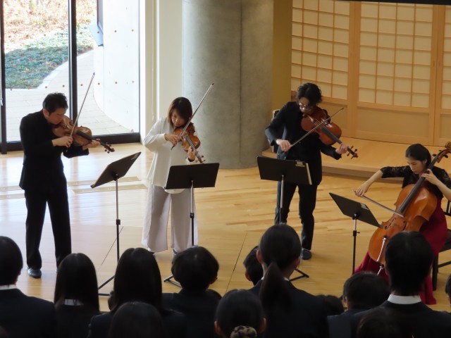 学びの杜(高野山小学校・高野山中学校)で、カルテットを聴きました。うっとりしたそうです。