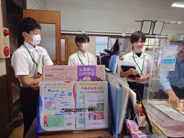 高野山金剛峯寺(結縁灌頂のイベント中の壇上伽藍)、平野清椒庵、高野山宿坊協会、高野幹部交番、高野山観光情報センターの官民5か所に分かれて体験を行いました。