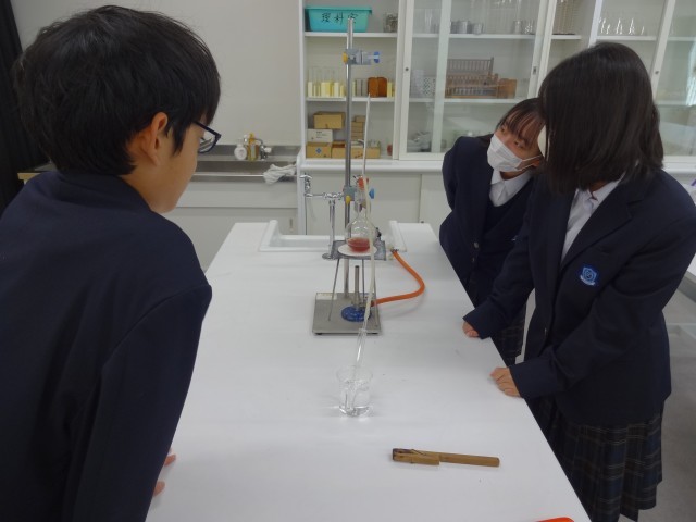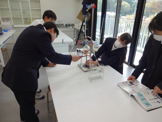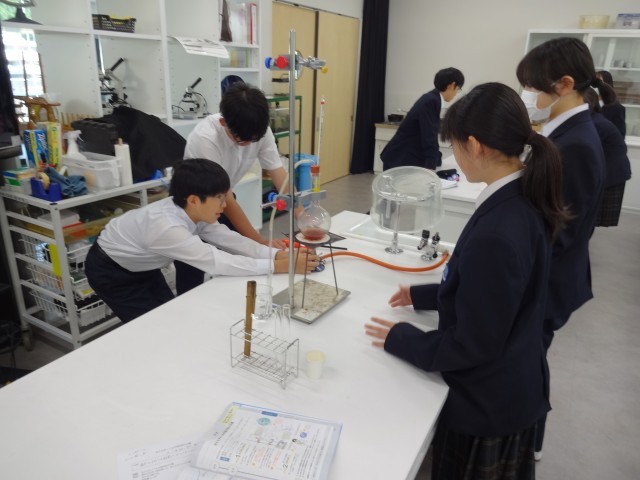 沸点の違いを利用して、ワインから水とエタノールを分ける実験を行いました。