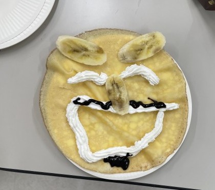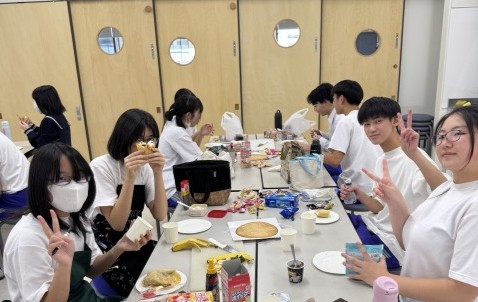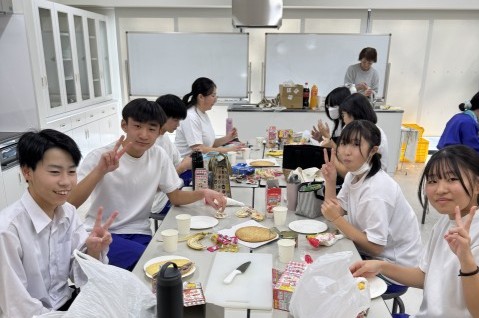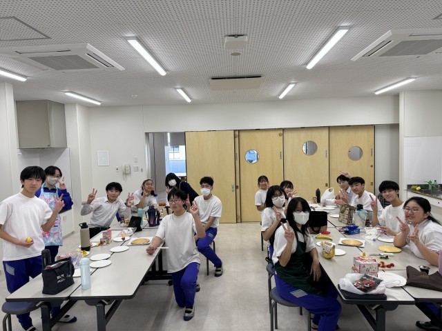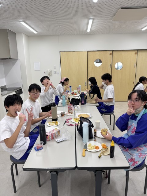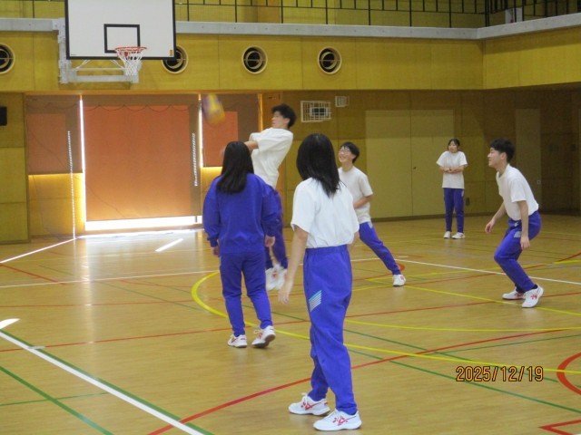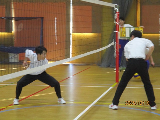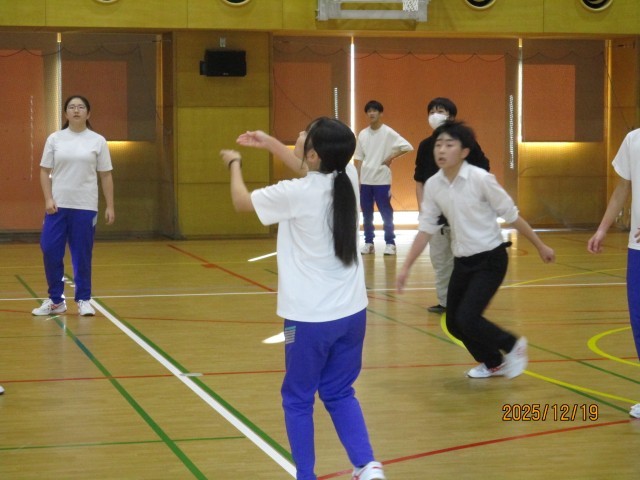 冬休み前、学年レクを行いました。バレーボール、クレープ作りを行い、楽しい時間を過ごすことができました。バレーボールでは、ラリーが続き、白熱した状況もあったり、「どっちがボール取んねん!」の珍プレイもあったり、笑顔あふれる時間となりました。クレープ作りでは、それぞれが材料を持ち寄り、各自それぞれのクレープを作りました。どれも美味しそうなクレープで、作る時間の雰囲気、頬張る表情も素敵でした。お楽しみさまでした。残りわずかの中学校生活、全力で楽しみましょう。