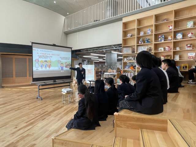 本校PTA・学校運営協議会の皆様が、高野山小中学生のマナー向上や交通安全を目標として企画をしてくださいました。南海りんかんバス株式会社様に依頼していただき、マナー向上に取り組んでいた生徒会も企画に混ぜていただきながら実施する運びとなりました。