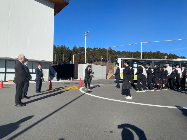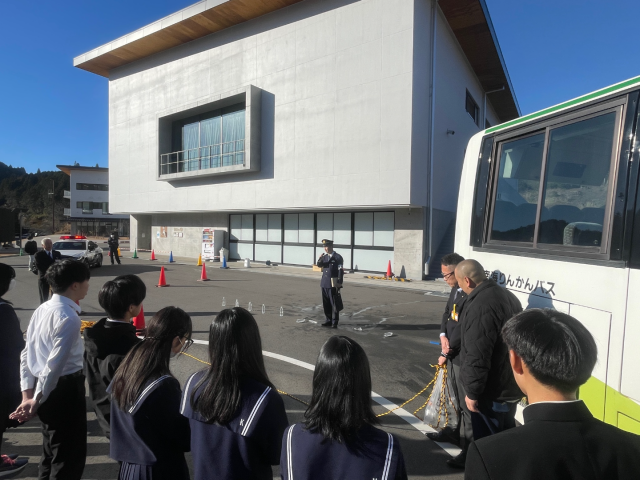 講座内では、マナーについて学ぶだけでなく、実際に校舎外で走行しているバスの内輪差を見ることができました。