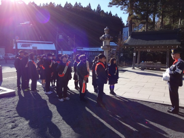 「110番の日」を明日に控え、啓発活動を高野幹部警察署、高野町教育委員会、高野山中学校の合同で行いました。