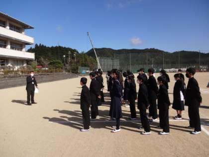 グランドに避難後、校長先生から震災についてのお話がありました。