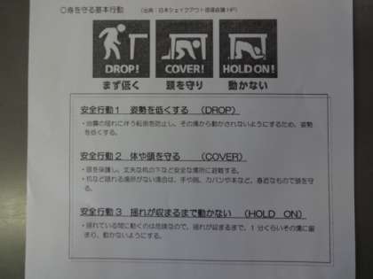 生徒たち「シェイクアウト」「おさない、走らない、しゃべらない、もどらない」を守り行動して避難しました。
