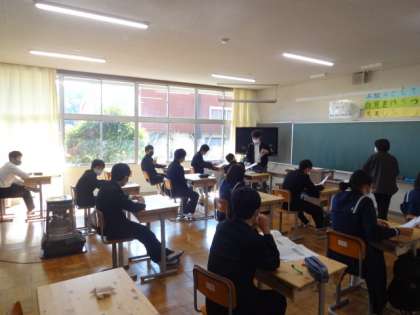 各学年の教室での避難訓練学習の様子。