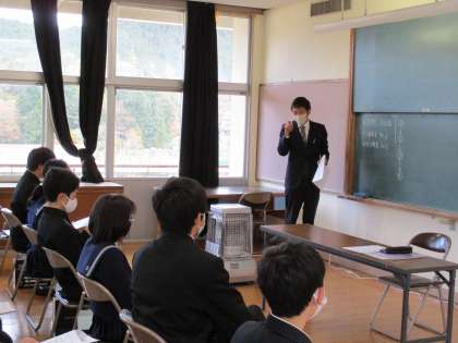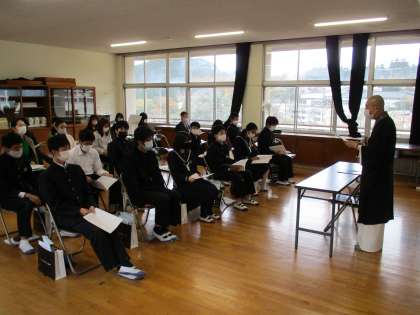 入試に向けて、準備することや心構え、各学校の情報を確認することができました。また、高野山高等学校の 富田 向真 先生から高校の紹介や受験に関するお話をしていただきました。