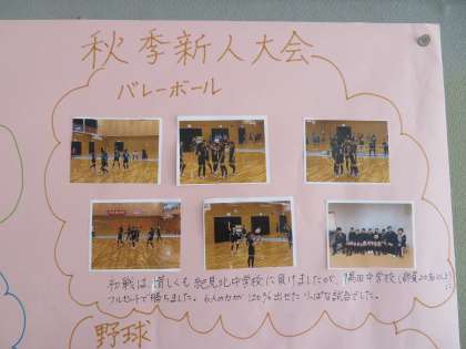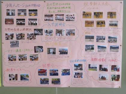 高野山中学校生徒玄関ホールに、いろんな行事で活躍する生徒の写真を展示しています。本校にお越しの際は一度ご覧ください。